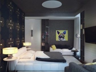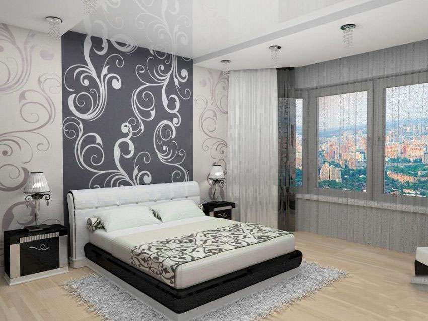 Die Verwendung von dunklen Tapeten ist ebenfalls erlaubt, jedoch nur, wenn im Schlafzimmer genügend Platz oder eine hohe Leuchtdichte vorhanden ist. Ansonsten erscheinen sie optisch eng und unbequem. Es wird nicht überflüssig sein, dem dunklen Hintergrund leichte Elemente hinzuzufügen und damit das richtige Gleichgewicht zu erreichen.