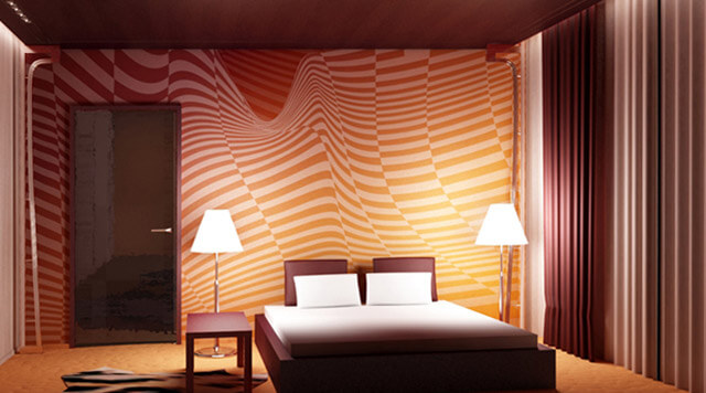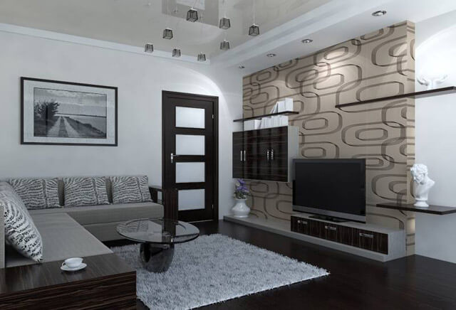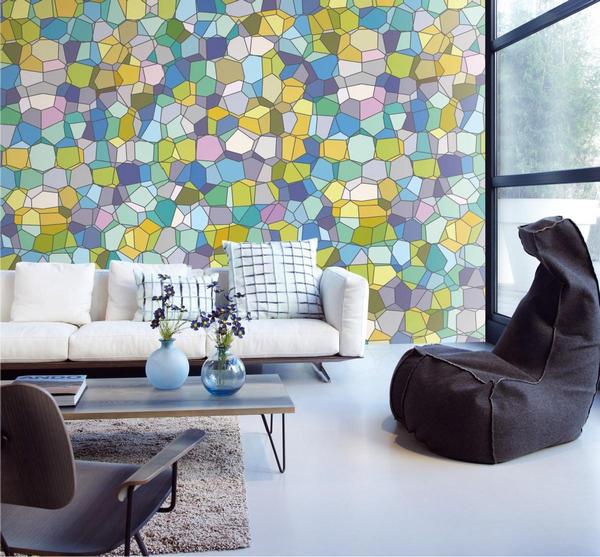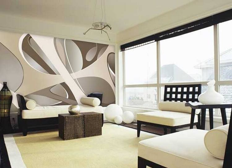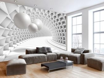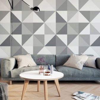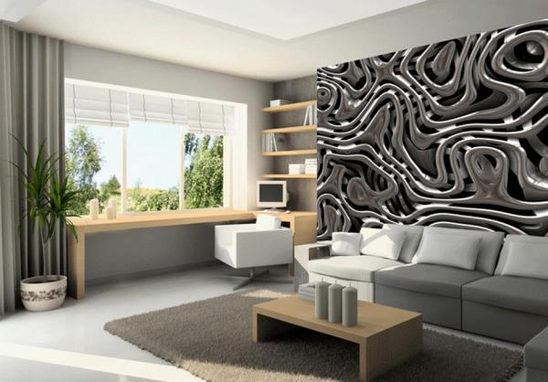 Wenn Sie in der Atmosphäre des Hauses ein Minimum an Strenge und Ordnung wollen, können Sie sich für eine 3D-Tapete mit abstrakten Zeichnungen entscheiden.