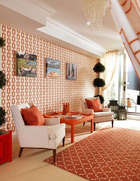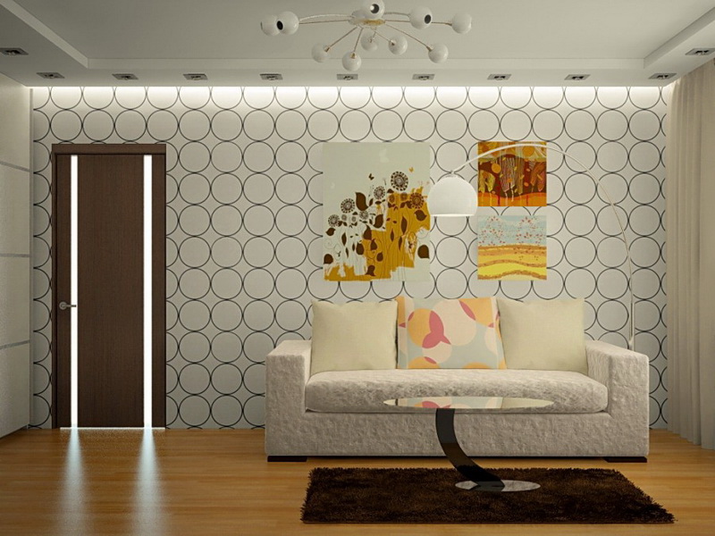 An den Wänden des Wohnzimmers oder der Halle wird harmonisch eine Vielzahl von Farben im Zusammenhang mit Ruhe aussehen. Aber auch hellere Farbtöne können sich sehen lassen, aber mit einer richtig gewählten Tonalität: Schärfe sollte keine Beschwerden für die Augen verursachen.