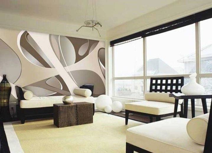 Wallpaper mit Abstraktion für Wände: Funktionen und Beispiele im Inneren