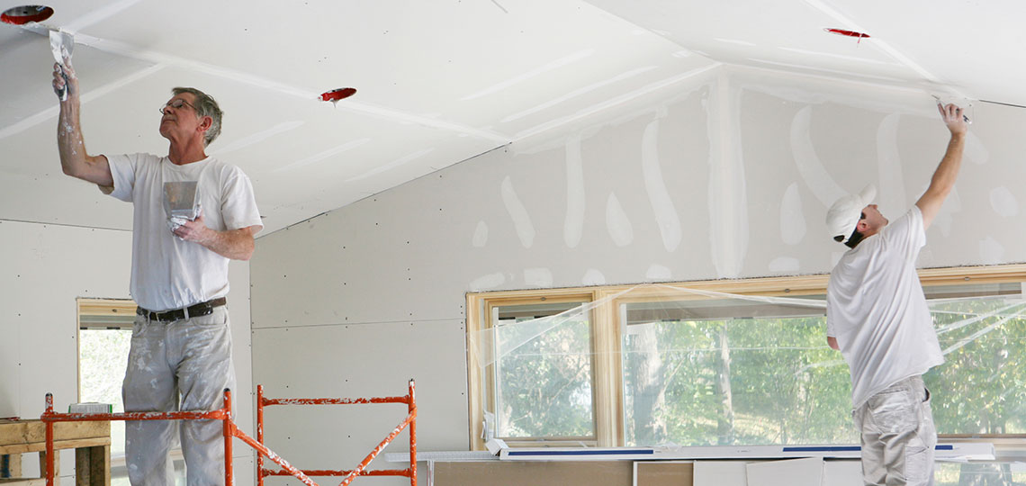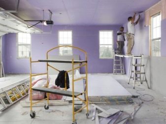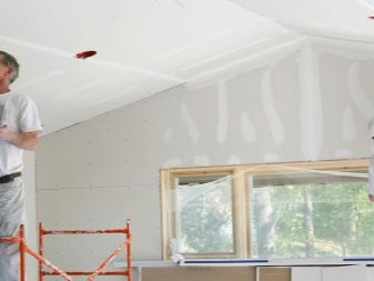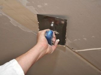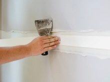 Trockenbauplatten haben eine ebene Oberfläche, aber Schwachstelle sind in diesem Fall die Gelenke. Sie werden reparieren müssen. Es ist notwendig, die Kappen der Schrauben zu ertränken, damit sie nicht über die Basis hinausragen.