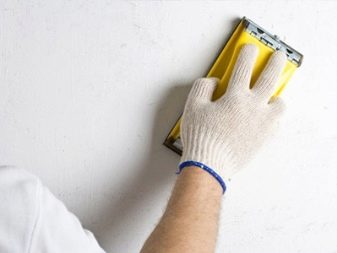 Die Trocknung sollte bei Raumtemperatur erfolgen, Fenster sollten nicht geöffnet werden, Heizungen oder Klimaanlagen sollten eingeschaltet sein.Im Hinblick auf das Schleifen empfehlen Maler feinkörniges Schleifpapier, das an einem Holzblock befestigt ist. Und zum Schleifen der Ecken einen speziellen Schwamm auftragen.