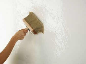 Der letzte Teil der Arbeit, nämlich die Grundierung, soll mit einer Walze und einem Pinsel durchgeführt werden. Die schützende Grundierung wirkt sich positiv auf die Haftung aus. Die Oberfläche ist langlebig, perfekt mit der Oberfläche kombiniert. Die Walze sollte mit einem Flor von 3 mm Länge gewählt werden. Das Auftragen einer Grundierung unterscheidet sich nicht wesentlich von der Lackierung - die Walze wird in den Behälter getaucht, die Schicht wird gepresst und auf das Substrat aufgetragen. Für den gleichen Zweck und den Pinsel verwenden. Wenn Sie große Flächen bearbeiten müssen, der Pinsel sollte breit sein, und für Ecken nähert sich der kleine Pinsel.