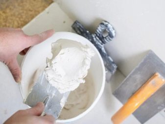 Es ist in Baumärkten und betriebsbereit Konsistenz gefunden. Verkaufe es in Plastikbehältern. In den Regalen der Baumärkte gibt es meist eine ölige Sorte.Es ist feuerfest, explosionssicher und auch feuchtigkeitsbeständig, so dass es in Räumen mit hoher Luftfeuchtigkeit eingesetzt werden kann - in Bädern, Bädern und Küchen. Es ist einfach anzuwenden, erfordert keine Verdünnung in Flüssigkeit und Kneten, hat eine lange Haltbarkeit. Aber leider ist dieser Kunststoffbaumaterial teurer als Trockenmischungen.