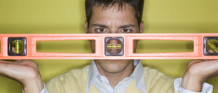 Bubble Construction Levels, sie sind auch Alkohol und Öl, im Volksmund Box-und Rail genannt. In der fertigen Form ist es eine Plastik-, Metall- oder Holzlatte, in der Ampullen mit Flüssigkeit und Luft angebracht werden. Bei der Verwendung dieser Spezies wird auf die Blase geachtet: Wenn die Oberfläche flach ist, befindet sie sich deutlich in der Mitte der Ampulle, und wenn Tropfen vorhanden sind, müssen Sie sie reparieren, bis die Blase zentriert ist.