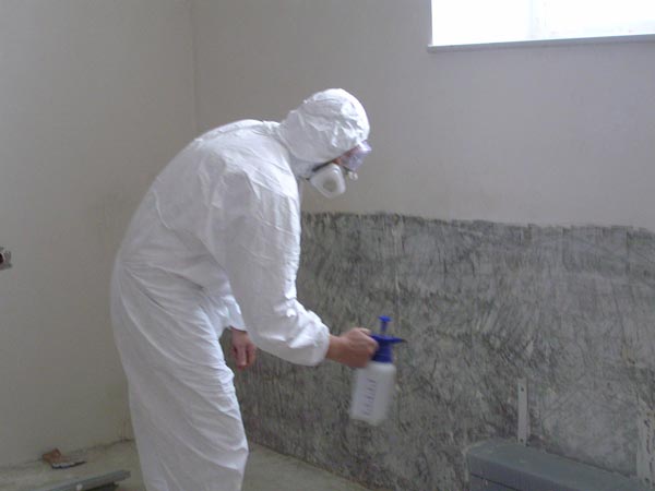 Persönliche Schutzausrüstung sollte verwendet werden - Atemschutz, Schutzbrille, Handschuhe und spezielle Kleidung. Alternativ können unnötige Kleidung und Mullbinde verwendet werden.
