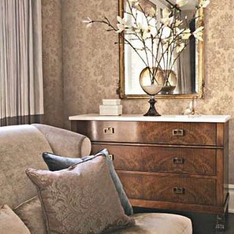 Die Auswahl der Produkte richtet sich nach den individuellen Eigenschaften des Raumes sowie nach den Vorlieben des Kunden. Es ist oft schwierig, eine Wandverkleidung für die verfügbaren dekorativen Elemente (Vasen, Figuren und andere) harmonisch auszuwählen, aber dank der großen Anzahl von Gegenständen können Sie es leicht tun.