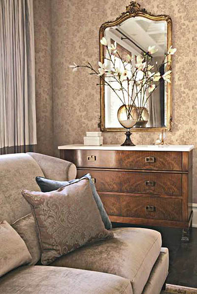 Im Arsenal gibt es auch mehr nichtstandardisierte Materialien von Wandbedeckungen, zum Beispiel Textil. Ihr Hauptunterschied zu anderen Hintergrundbildern ist, dass die vordere Schicht ist ein natürlicher Stoff, mit dem Sie ein repräsentativeres Interieur schaffen können.