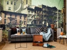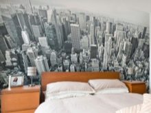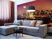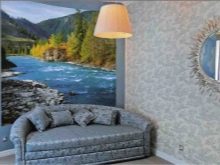 Zu den ungewöhnlichen Designlösungen gehören Tapeten mit dreidimensionaler Wirkung.Am besten alle Arten von Panoramen - Bilder der Stadt, schöne Natur oder ein luxuriöser Strand.