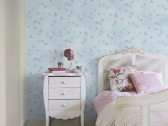 Verwenden ungewöhnlich für die gewählte Richtung Schattierungen oder Muster, Sie können einen Raum in einem einzigartigen Stil erstellen. Zum Beispiel können Sie florale Motive im weichen, minimalistischen Stil zu blassrosa oder blauen Akzenten hinzufügen. So wird das Zimmer niedlicher aussehen.