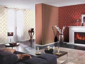 Beliebt, wie zuvor, genießen Sie stilvolle Tapetenimitation. Eine solche Wandverkleidung kann mit natürlichem Holz, Stein, Glas oder Gips gestylt werden. Solche Tapeten werden empfohlen, um den Raum zu zonieren und schöne Akzente zu setzen.