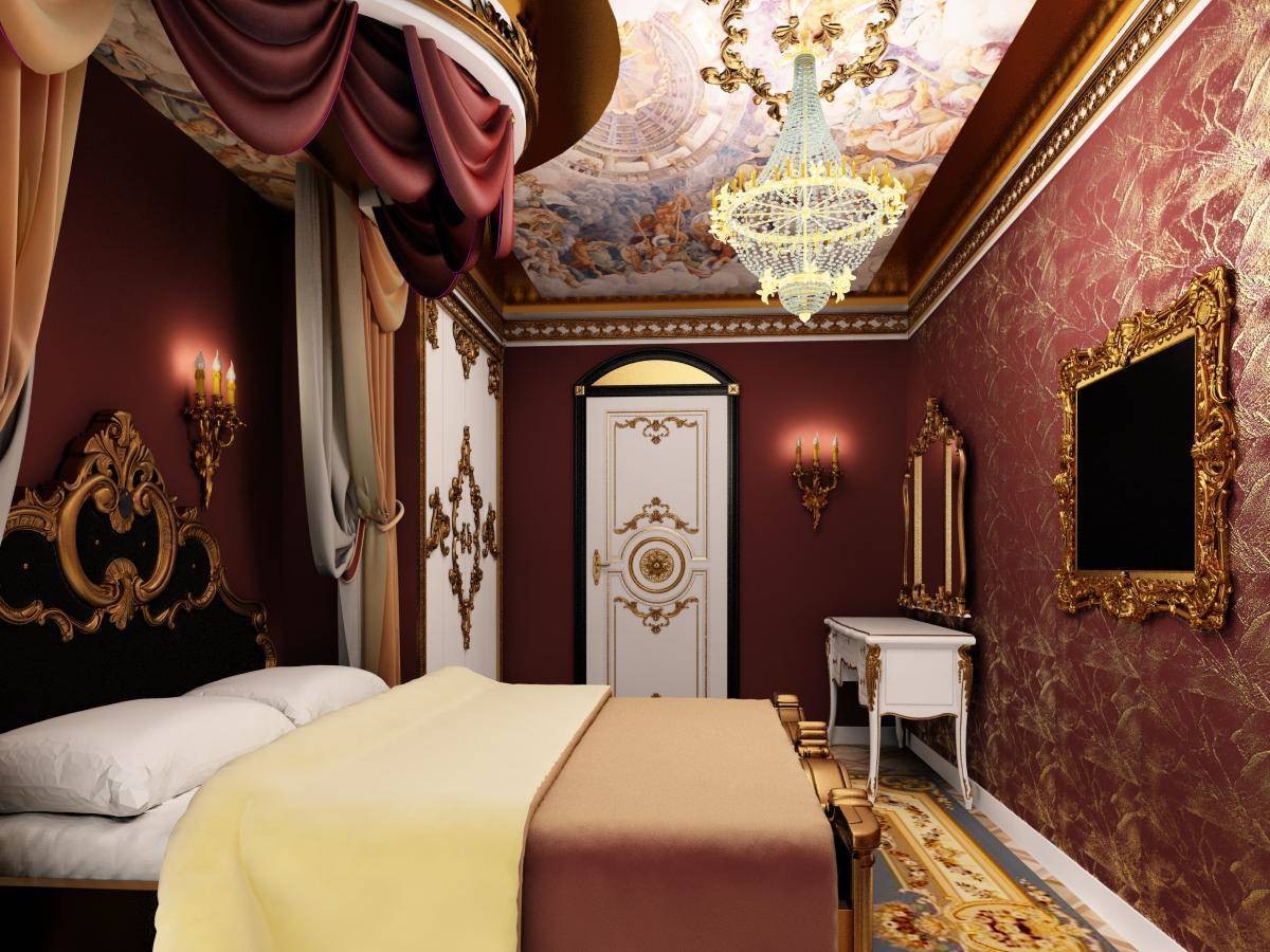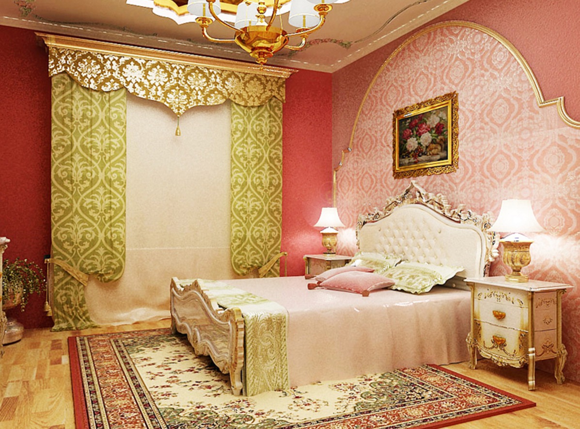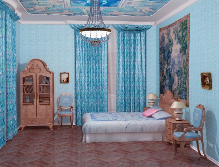 - Rokoko Viele Menschen verwechseln diesen Stil mit Barock. Aber es gibt gewisse Unterschiede zwischen ihnen. Vor allem ist es bemerkenswert, dass das Rokoko viel einfacher und raffinierter ist. Hier sind relevante Farbtöne wie hellblau, hellrosa oder sand. Verschiedene niedliche Bilder oder Blumendrucke werden passend sein.Dieser romantische Stil kann Sie dazu inspirieren, ein Schlafzimmer zu entwerfen, in dem Sie immer nur in romantischer Stimmung sind.