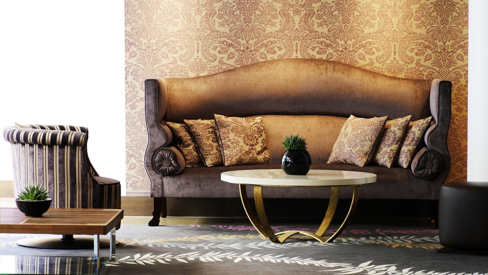 - Barock. Tapeten in diesem Stil unterstreichen den besonderen Luxus und die Verarbeitung von Teilen. Schicke Tapeten im Barockstil lassen Ihr Zimmer wie einen schönen Palast aussehen. Sie zeichnen sich durch den Einsatz einprägsamer Muster aus. Ornamente werden in der Regel in Pflanzenmotiven hergestellt. Schöne Monogramme und Damaskus-Themen werden auch oft verwendet. Von den Schattierungen erwähnenswert gesättigten Burgunder, exquisite Beige oder Gold.