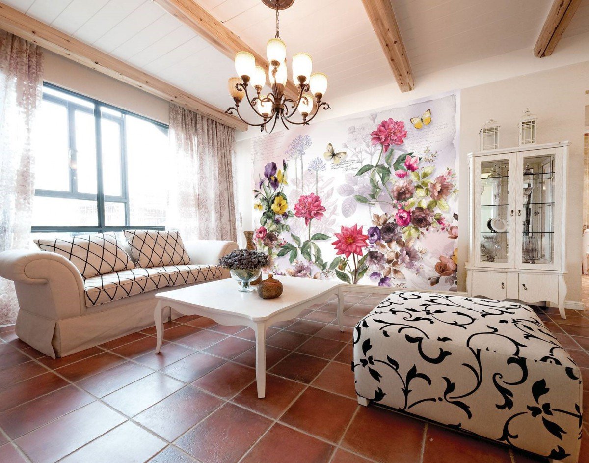 - Provence. Süß und charmant aussehen Tapete im französischen Stil Provence. Für diese rustikale Ausrichtung ist der Einsatz von hellen Farben, floralen Mustern oder floralen Mustern typisch. Akzente in Form von hellen Holzpaneelen oder Stoffeinlagen spielen hier ebenfalls eine Rolle. Für die Provence zeichnet sich die Verwendung von schönen Gemälden oder Fototapeten aus. Sie können Waldlichtung, eine französische Vorstadt oder ein Lavendelfeld dargestellt werden. Provence-Stil ermöglicht es Ihnen, sich zu beruhigen und auf eine ruhige Art und Weise zu stimmen. Daher sind diese Tapeten ideal für den Einsatz im Wohnzimmer, Schlafzimmer, ethnischen Chalet oder sogar in der Küche und Terrasse.