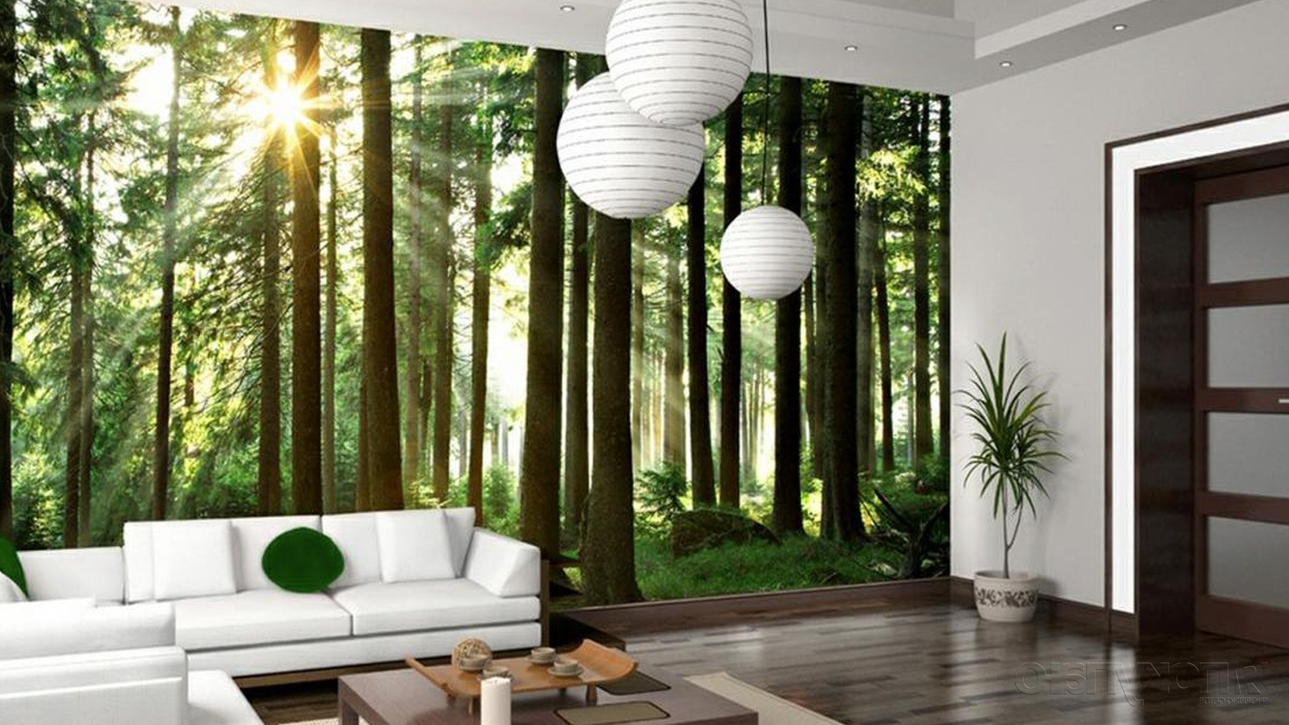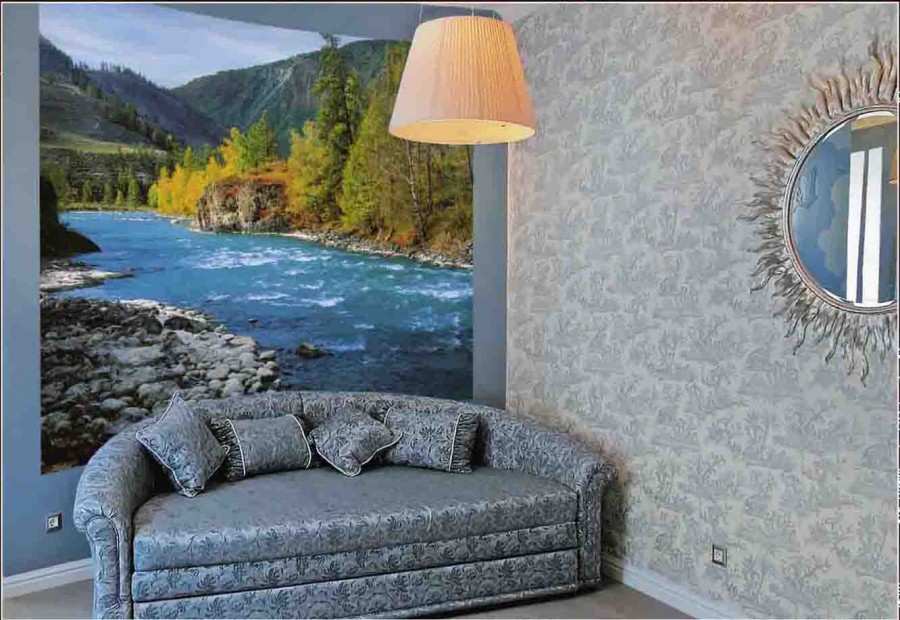 - Näher an der Natur. Im Öko-Stil oder in der Moderne wird nicht nur die Tapete mit einem Pflanzen-Print organisch aussehen, sondern auch die dazugehörige Tapete. Verwenden Sie Bilder von Gärten, Teichen, Bergen oder anderen Orten, an denen Sie in die richtige Atmosphäre eintauchen können.