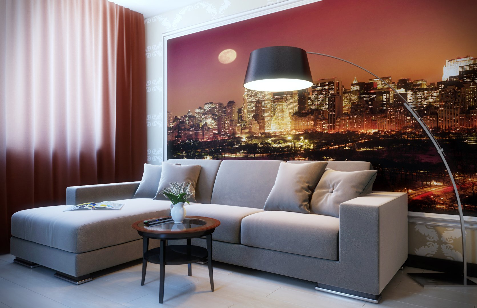 - StadtgeschichtenNeben Bildern der Natur sind auch Bilder beliebt, die die Atmosphäre einer lauten Stadt vermitteln. Wenn Sie schon lange irgendwo hinziehen oder ein neues Land besuchen möchten, dann wird Ihnen diese Designentscheidung gefallen. Sie können für Ihr Wohnzimmer oder Schlafzimmer das Bild der lauten Straßen von American Manhattan, Nacht London oder romantischen Paris wählen. Diese Tapeten werden im Interieur im Stil eines Lofts oder High-Tech gut aussehen. Kombinieren Sie dieses Bild mit einer hellen einfarbigen Tapete oder sogar einer Ziegelmauer.