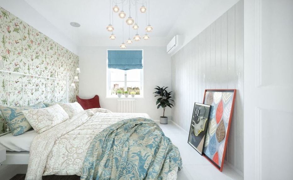 - Skandinavisch. Mediterrane und skandinavische Stile ziehen Aufmerksamkeit mit hellen Farben und minimaler Anzahl an hellen Akzenten auf sich. Tapeten sind in Pastellfarben ausgewählt. Kaltlichttöne sind ebenfalls willkommen.