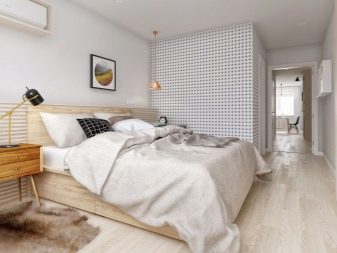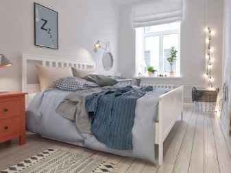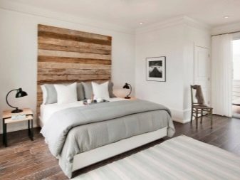 Wir sollten auch erwähnen, dass helle Tapeten im Inneren des skandinavischen Schlafzimmers nicht zu empfehlen sind. Der Grund dafür ist prosaisch: Anstatt sich auszuruhen, wirken solche Beschichtungen genau entgegengesetzt und stimulieren die emotionale Aktivität der Person. Darüber hinaus haben moderne Schlafzimmer selten große Abmessungen und daher Tapeten mit kräftigen Akzentfarben können andere Innenelemente einfach "übertönen".