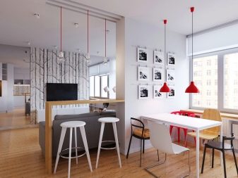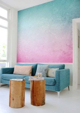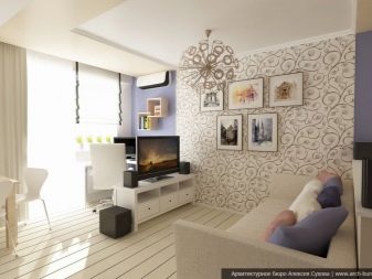 - Um einen Akzent zu schaffen, genügt es, die Hauptwand mit hellen oder dunklen Tapeten zu dekorieren. Die Hauptsache ist, dass der transformierte Raum nicht unter einem Mangel an Beleuchtung leidet, der dem Inneren die gewünschte Leichtigkeit nehmen kann.