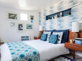 - Wenn die Muster auf der Tapete nicht aufdringlich sind, dann kann die Wand, die mit solchen Leinwänden überklebt wird, mit zusätzlichen dekorativen Elementen verziert werden.