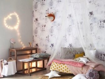 Eine gute Alternative zu den oben aufgeführten Lösungen sind abstrakte Tapete im skandinavischen Stil. Es ist sinnvoll, sie zu verwenden, um spektakuläre Akzente in Räumen zu setzen, deren Interieur weit vom alten Stil entfernt ist. Nicht weniger beliebte Leinwände mit exquisiten Damastmustern, Blumenbildern und Kinderzeichnungen.