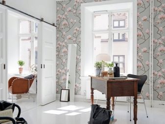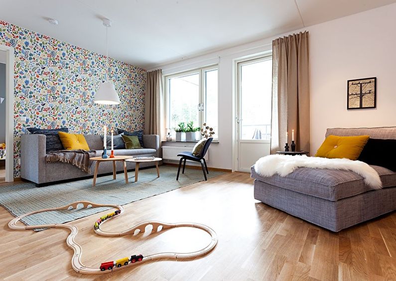 Der skandinavische Stil im Innenraum beinhaltet die Verwendung von mehreren Haupttypen von Tapeten, von denen jede auf ihre Art bemerkenswert ist. Dazu gehören: