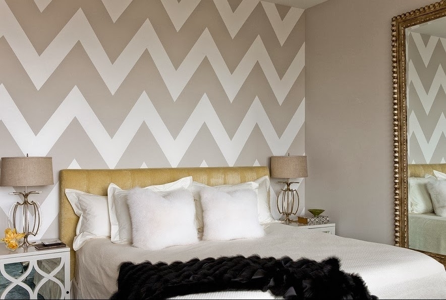 - Leinwände mit sich wiederholenden Ornament verziert. Solche Tapeten zeichnen sich durch strenge Linien, originale geometrische Formen, Streifen und Rauten aus.