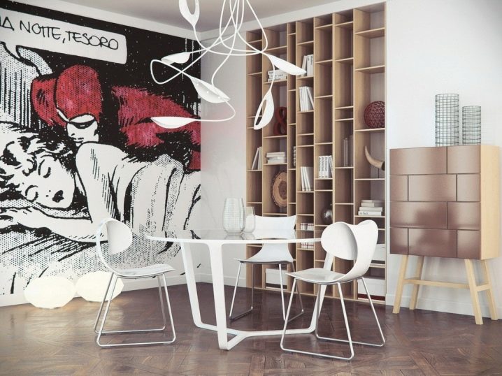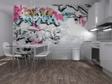 Graffiti ist eine interessante und nicht-triviale Art, ein Interieur zu dekorieren, aber es sollte vorsichtig verwendet werden, besonders auf kleinem Raum. Die Größe der Fototapete ist relevant für große Räume mit hohen Decken, und in winzigen Räumen wirken sie drückend auf die menschliche Psyche und stören ihre Ruhe.