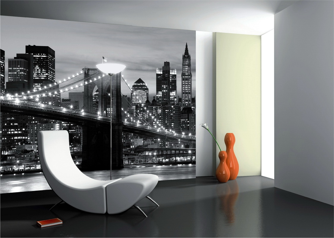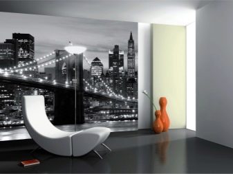 - Panorama-Leinwände helfen, den Raum aufgrund seines Maßstabs visuell zu vergrößern. Diese Tapete zeigt meistens eine Draufsicht von einem Panoramafenster der modernen Metropole, Hochhäuser und Wolkenkratzer, majestätische Brücken und andere interessante architektonische Strukturen;