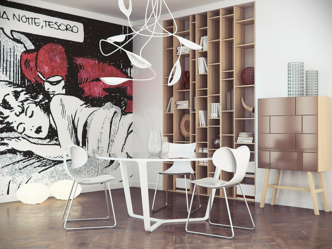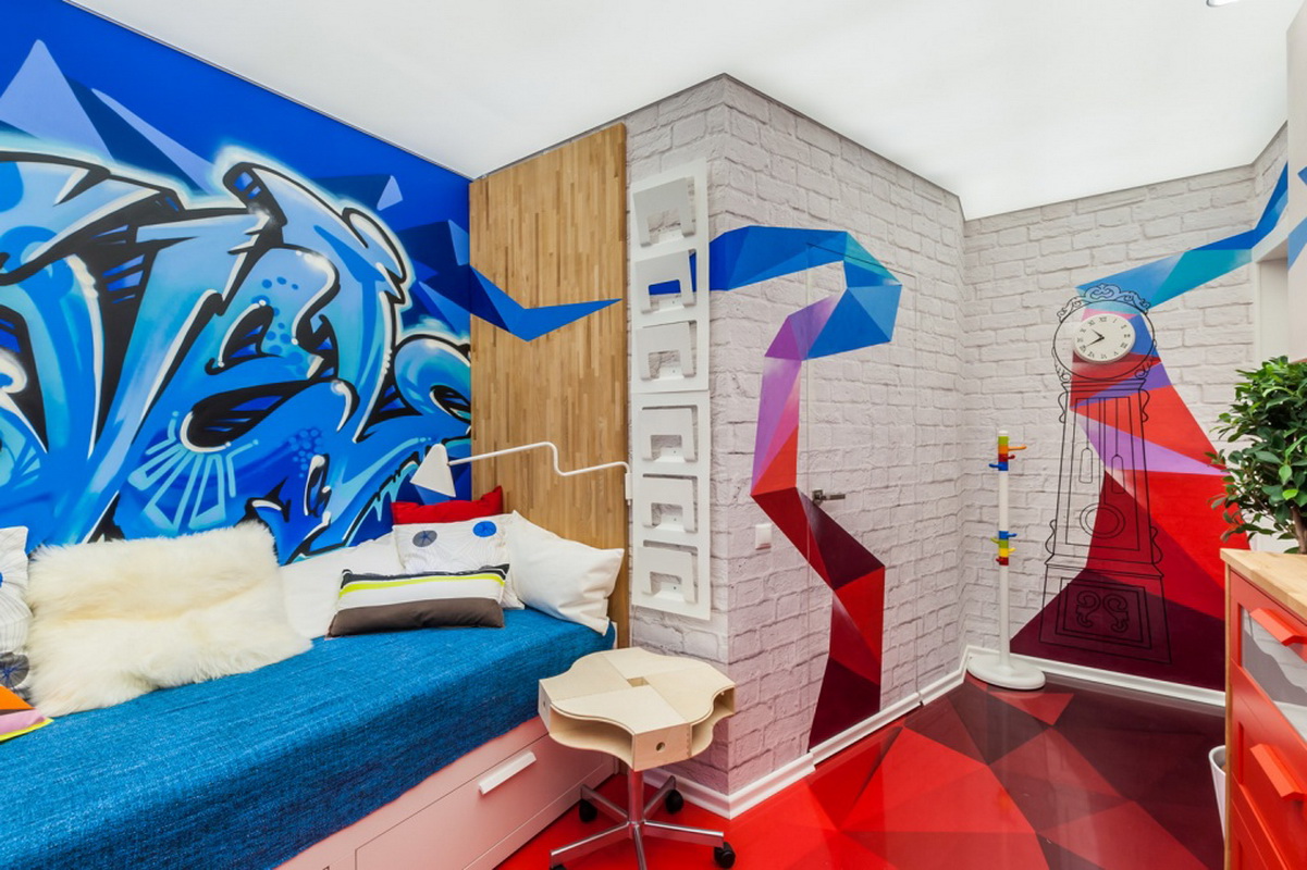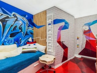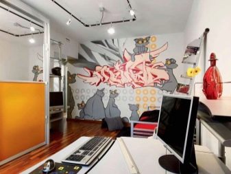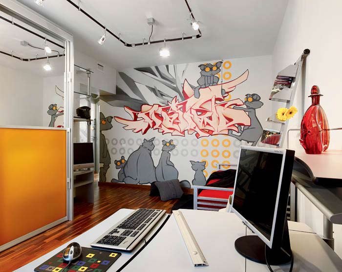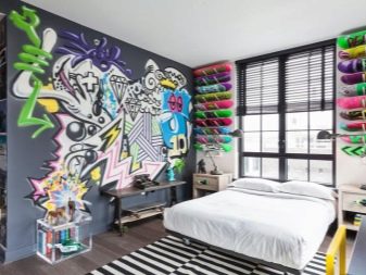 - Meistens wird der Abschluss im Geiste der Stri-Art in den Räumen der jüngeren Generation verwendet. Graffiti ist eine gute Möglichkeit, sich auszudrücken, jugendlichen Maximalismus zu demonstrieren, den Raum mit einem schelmischen Jugendgeist zu füllen und die Interessen des Raumbesitzers zu betonen;