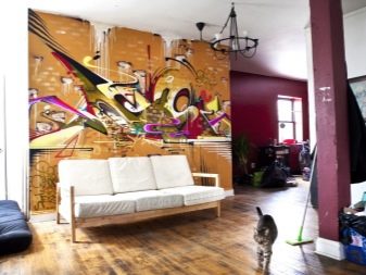 Der industrielle Stil des Lofts, der der Straßenatmosphäre, dem Underground und dem Grunge nahekommt, wird zu Recht als ein einheimischer Stil für Graffiti anerkannt. Photo-wall-paper mit dem Bild der rohen Ziegelmauer im Tandem mit Figuren aus Comics oder Plots von Hip-Hop - das ist für einen brutalen Hooligan-Innenraum notwendig.