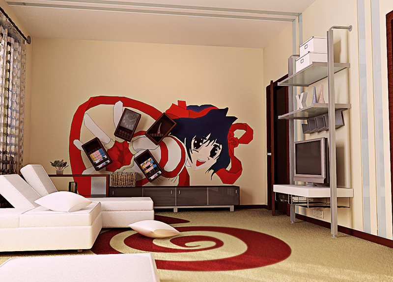 - Hintergrundbilder stellen eine einzelne eigenständige Zeichnung dar, die in einem bestimmten Stil erstellt wurde.Zum Beispiel, Liebhaber der japanischen Animation, können Sie die Bilder von Anime-Figuren wählen. Für das Bild ist ein geeigneter Platz im Inneren gegeben, zum Beispiel am Kopfende des Bettes oder, im Gegenteil, im Erholungsgebiet;