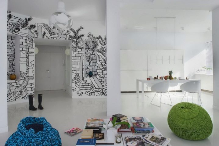 - Dies ist eine gute Möglichkeit, etwas Helles, Nicht-Triviales in das Design eines Raumes zu bringen, aber ohne ungerechtfertigte materielle Investitionen.