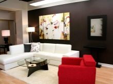 Wenn der Raum klein ist, aber Sie noch dunkle Schattierungen hinzufügen möchten, ist es besser, sie auf Akzente zu beschränken: Sie können ein dunkles Bild oder Vorhänge aufhängen, einen Boden mit einem Muster einer geeigneten Farbe wählen, aber keinesfalls auf einem ebenen Boden verweilen und nicht alle Wände im Raum abdecken .