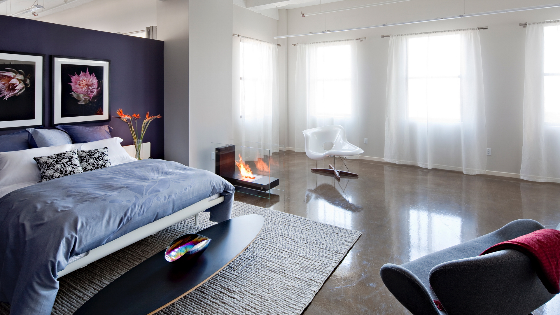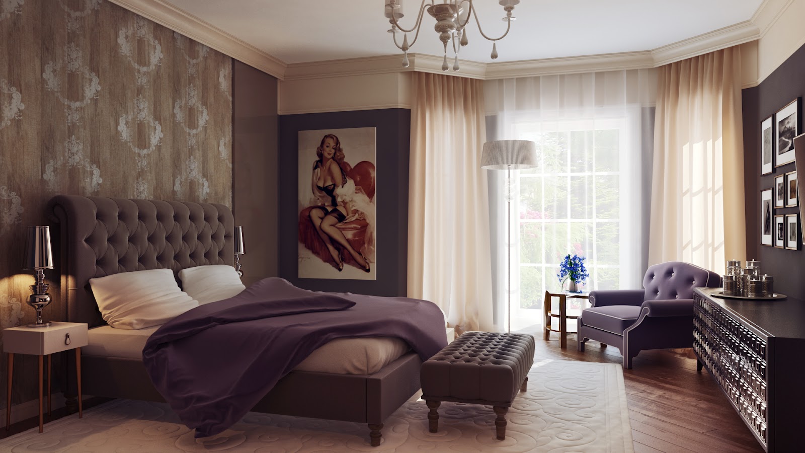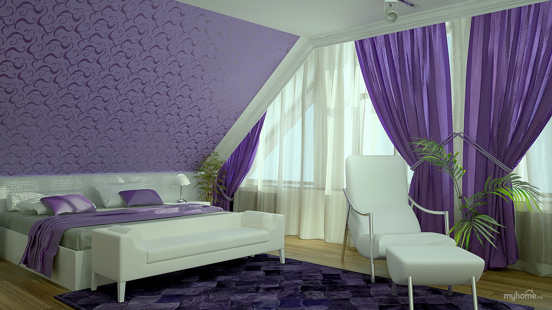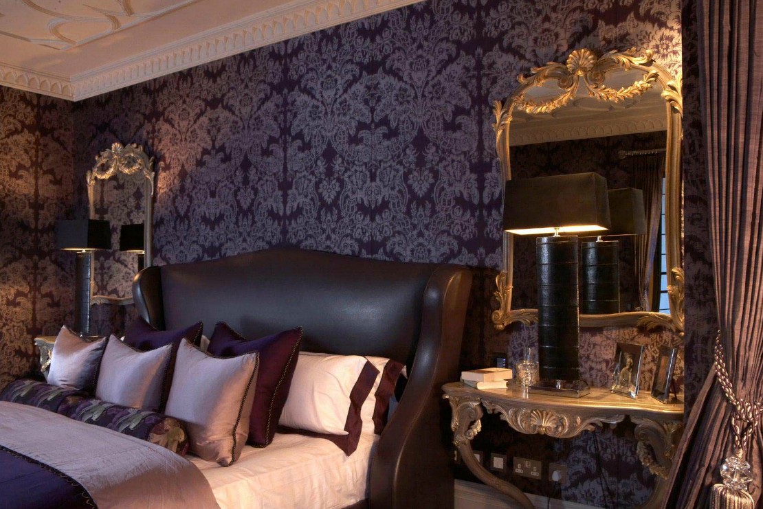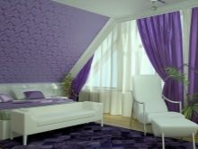 Lila Tapeten passen perfekt ins Schlafzimmer, sie betonen den Zweck des Raumes, verleihen ihm einen einzigartigen Stil mit einem Hauch von Magie und etwas Mystik.