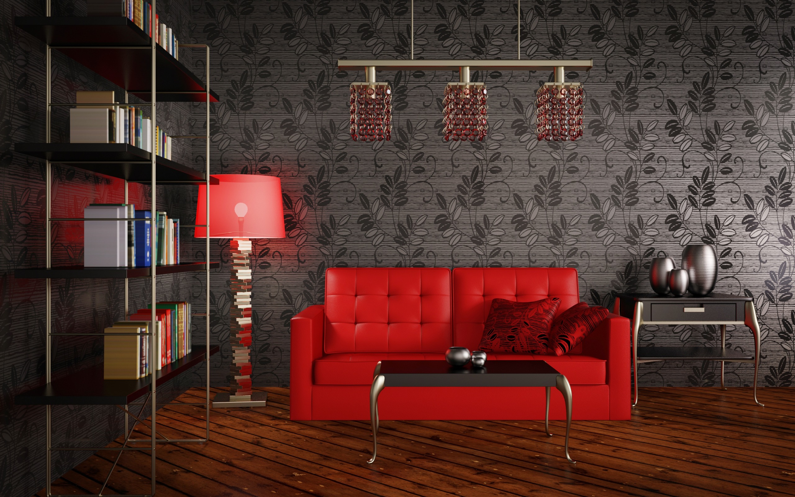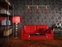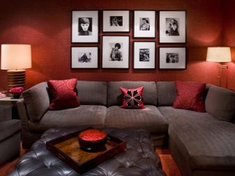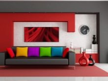 Rot und Bordeaux eignen sich gut für den Einsatz in großen Wohnräumen, wo viele Gäste anwesend sind, sowie eine ausreichende Anzahl von Accessoires, die nicht nur den Raum ergänzen, sondern auch die Aggressivität der gewählten Farbe reduzieren.