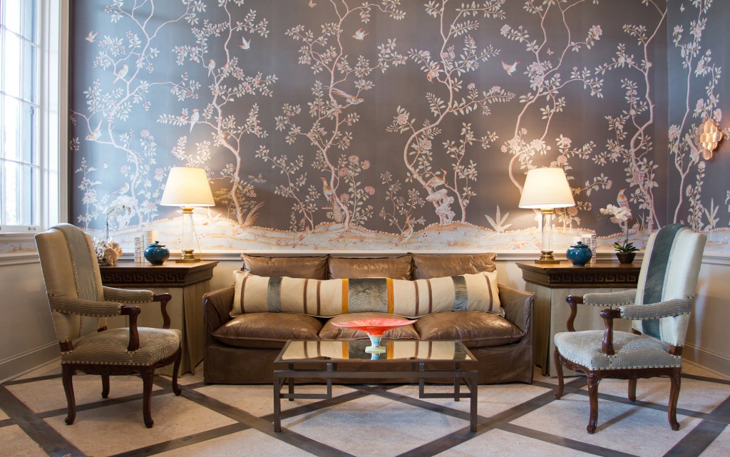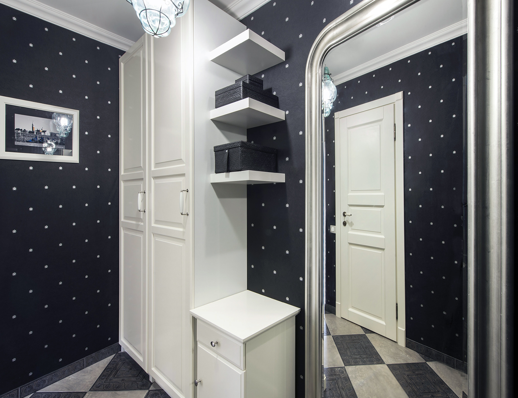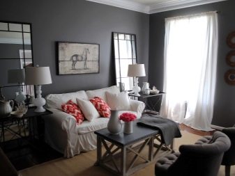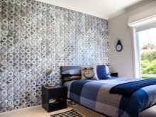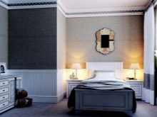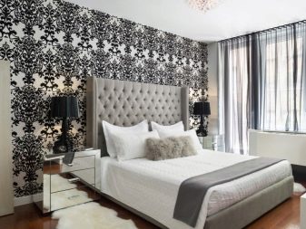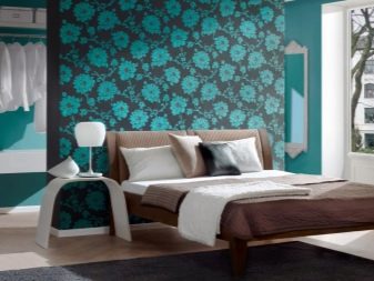 Die Verwendung von Blumendrucken, geometrischen Mustern, zusätzlichen Bildern hilft, das vollständigste Bild im Raum zu schaffen. Blumendrucke werden oft auch mit Stil verwendet. Provence und Land. Um den Raum zu erweitern, können Sie eine Kombination aus dunklen Wänden mit einer Spiegelwand verwenden. Solch eine Entscheidung wird den Raum erweitern, einen unvergesslichen Effekt schaffen und in Kombination mit hellen Möbeln wird es ein modernes Aussehen geben.