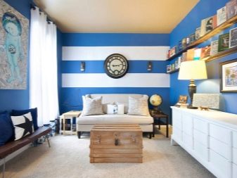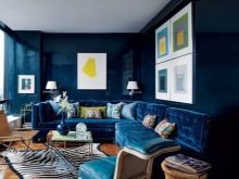Matte blaue Wände sind eine gute Option für ein Schlafzimmer, Diese Wahl wird eine Atmosphäre von Magie und Komfort im Raum geben. Darüber hinaus ist Blau eine der beliebtesten Farben bei der Gestaltung von Wohnzimmern. Mit Hilfe des Spiels mit verschiedenen Schattierungen können Sie ein unvergessliches einzigartiges Interieur bekommen.
