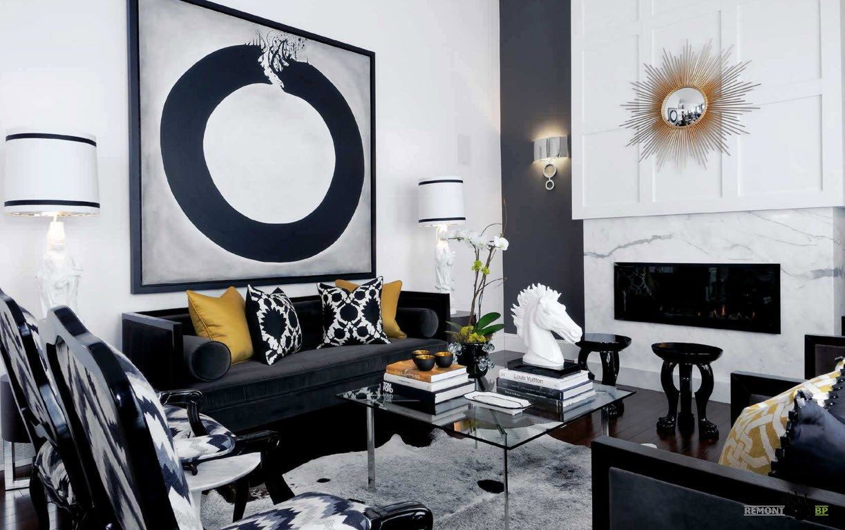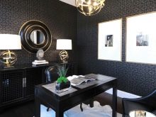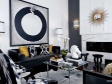 Schwarz sollte unbedingt kombiniert werden. Schauen Sie sich gute Möglichkeiten für Zimmer im Jugendstil an, in denen Schwarz mit Gold kombiniert ist. Schwarz- und Goldtöne können dem Raum Luxus, Eleganz und eine besondere Atmosphäre verleihen. Schwarz und Rosa oder Schwarz und Violett passen perfekt in das Innere eines weichen Schlafzimmers, aber schwarzer Backstein harmoniert harmonisch mit dem Wohnzimmer oder Esszimmer im Loft-Stil.