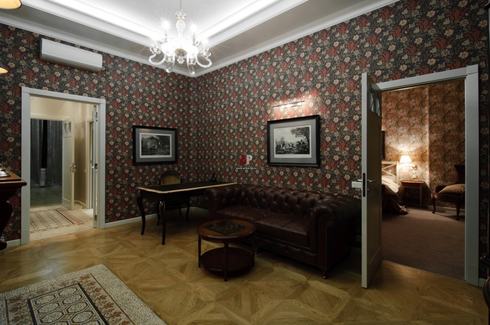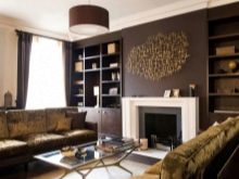 Es ist auch möglich, den dunklen Schatten mit Tapeten zu verdünnen, auf denen Gemälde platziert werden, meistens sind dies Reproduktionen von berühmten Leinwänden, ihre Anordnung auf einer dunklen Basis ist eine gewinnende Option für ein Wohnzimmer oder einen langen Korridor, dessen Dimensionen Ihnen erlauben, solche Akzente darin zu markieren.