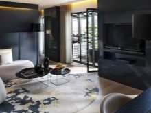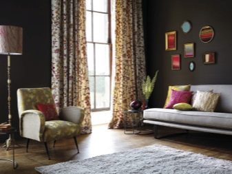 Wie jede andere Farblösung haben dunkle Versionen eine Reihe von Vor- und Nachteilen. Zu den Vorteilen gehört die Fähigkeit, ein Übermaß an Licht zu verbergen, zum Beispiel kann es in einem Raum auf der Sonnenseite relevant sein, wo das Licht am frühen Morgen am häufigsten blendet und den ganzen Tag über anhält. Mit Hilfe von dunklen Farben können Sie bestimmte Bereiche des Raumes leicht identifizieren und ein harmonisch korrektes Interieur schaffen.