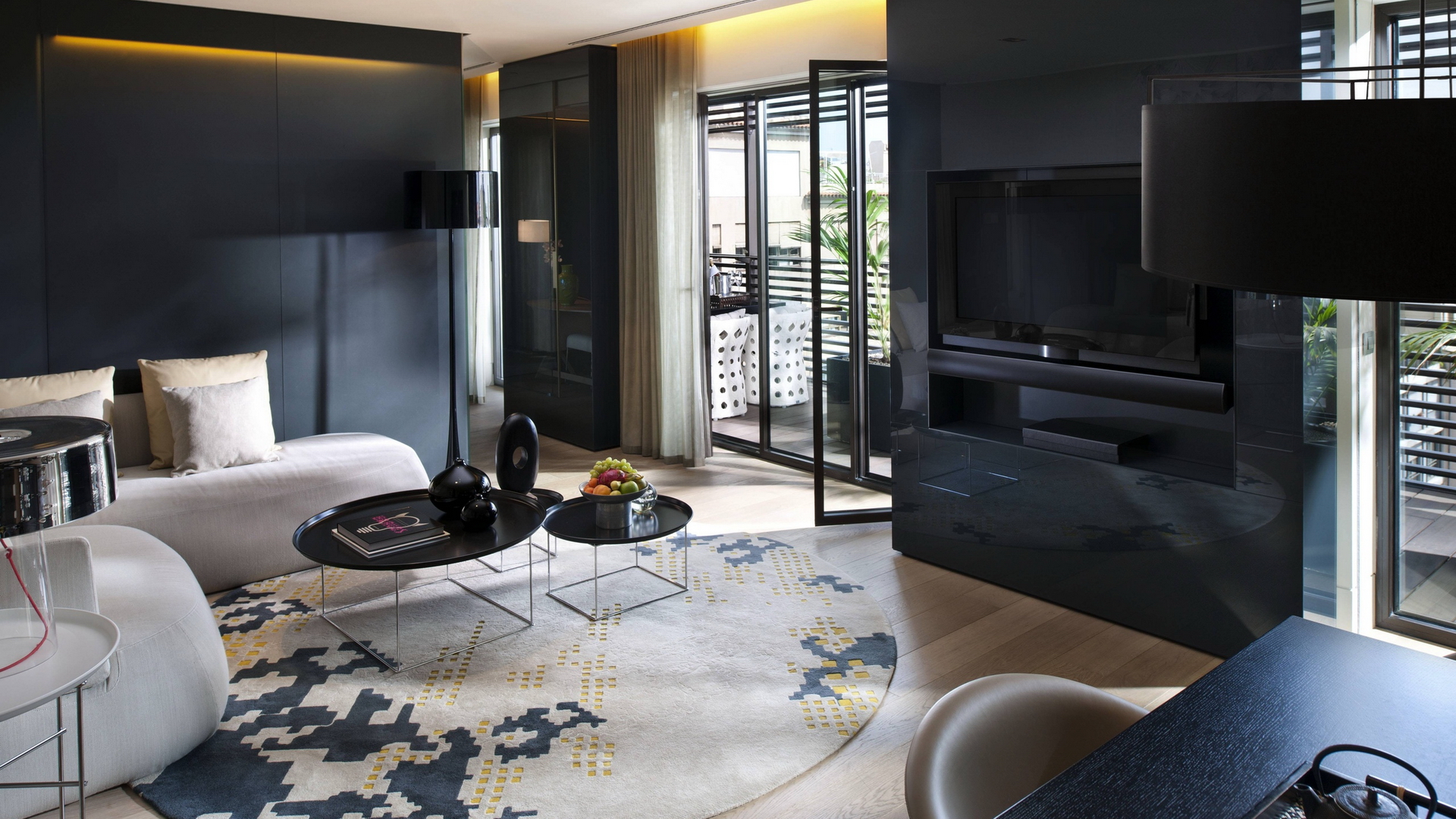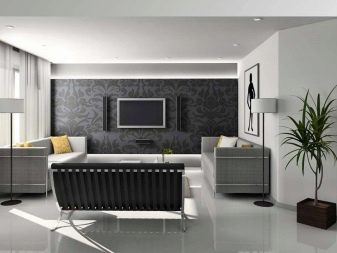 Für fast jede Stilentscheidung im Interieur können Sie Ihre eigene Version einer dunklen Wandverkleidung wählen. Zum Beispiel wird Minimalismus Stil zu monotonen dunklen Matte Optionen sein. Wenn in dieser Entscheidung, eine Deckung mit einem Dekor zu wählen, dann ist es besser, auf kontrastierende große geometrische Formen zu achten, die nicht stark offensichtlich sein werden, aber gleichzeitig einen angenehmen Akzent innerhalb der Stilentscheidung schaffen werden.