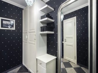 Wenn Sie schwarze Tapete im Flurinneren verwenden möchten, sollten Sie sie nur stecken auf der Unterseite der Wand.