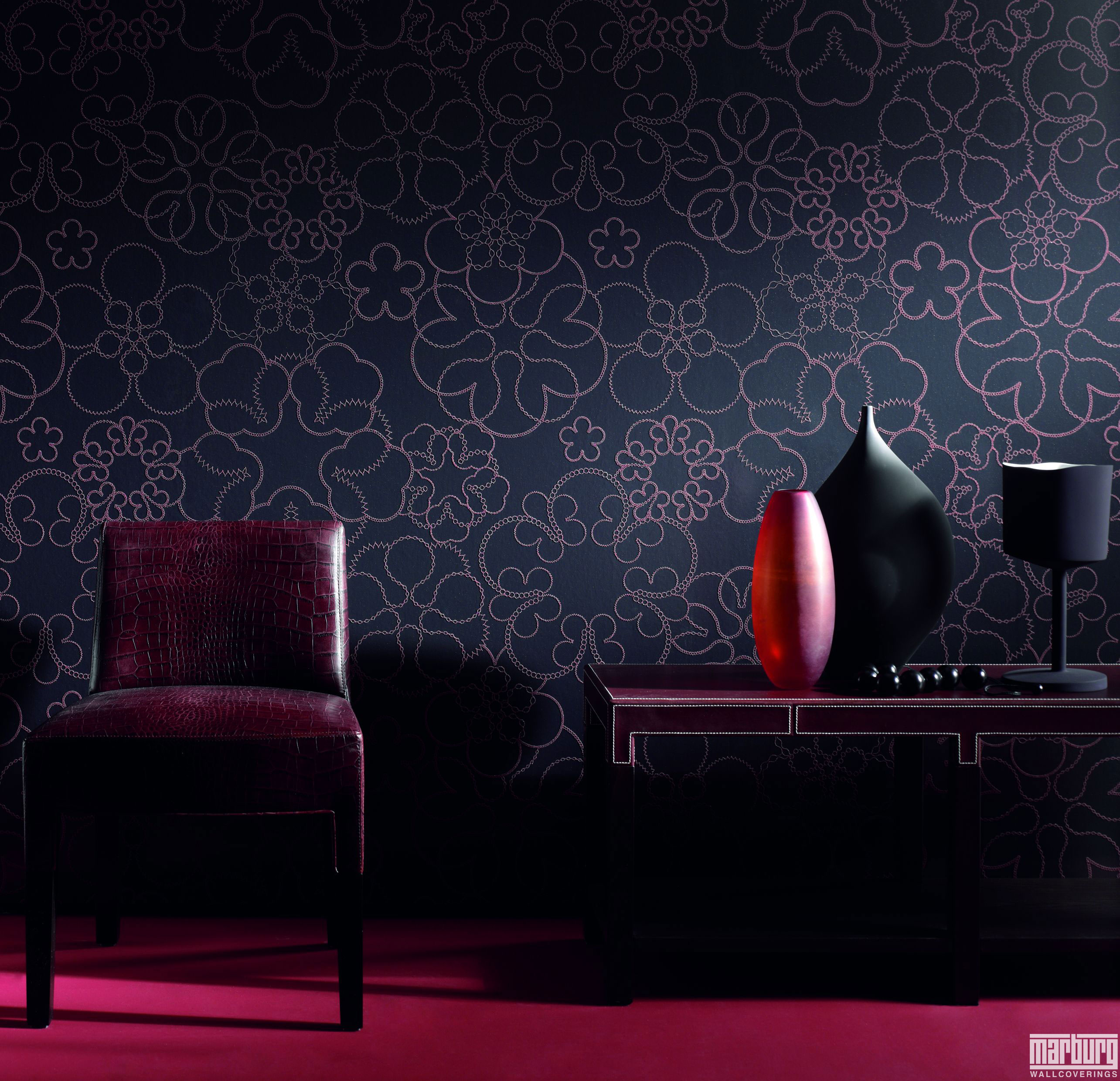 Originaler Stil mit Tapeten in dunklen Farben.