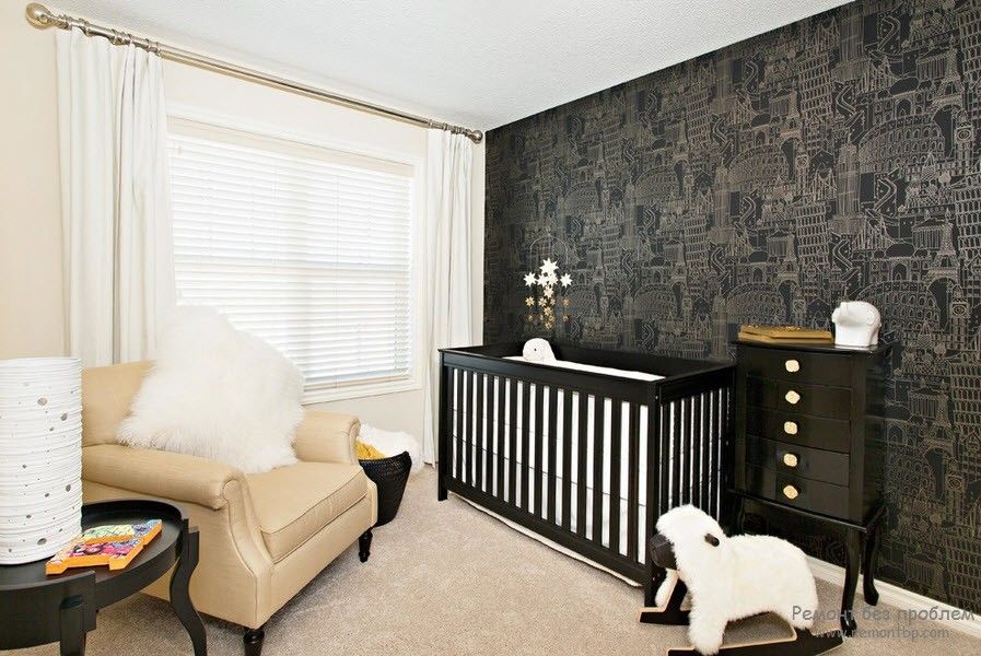 Für ein Kinderzimmer ist es besser, solche Schattierungen nicht zu wählen. Sie können Aggression, unruhigen Schlaf und dunkle Stimmungen bei einem Kind hervorrufen. Das Maximum, das gewählt werden kann, ist schwarze Schrift oder mittelgroße, selten platzierte Zeichnung auf helleren oder helleren Leinwänden.