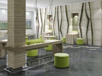 Vinyl imitiert perfekt Holzdekor. Dies ist eine gute Wahl für Fans von natürlichem Design, Öko-Stil und Loft-Themen. Strukturierte Unregelmäßigkeiten und Rauigkeiten vermitteln perfekt die Struktur von Rinde, Schnitten und Brettern. Eine Wand oder Nische mit einer solchen Abdeckung wird ein echter Hit in Ihrer Einrichtung sein. Anhänger von Minimalismus, Industriestil und High-Tech können nicht ohne Nachahmung von weißem Backstein, Betonpflaster und Putz auskommen. Sogar die Wirkung von Rost an den Wänden kann Tapeten aus Vinyl liefern.