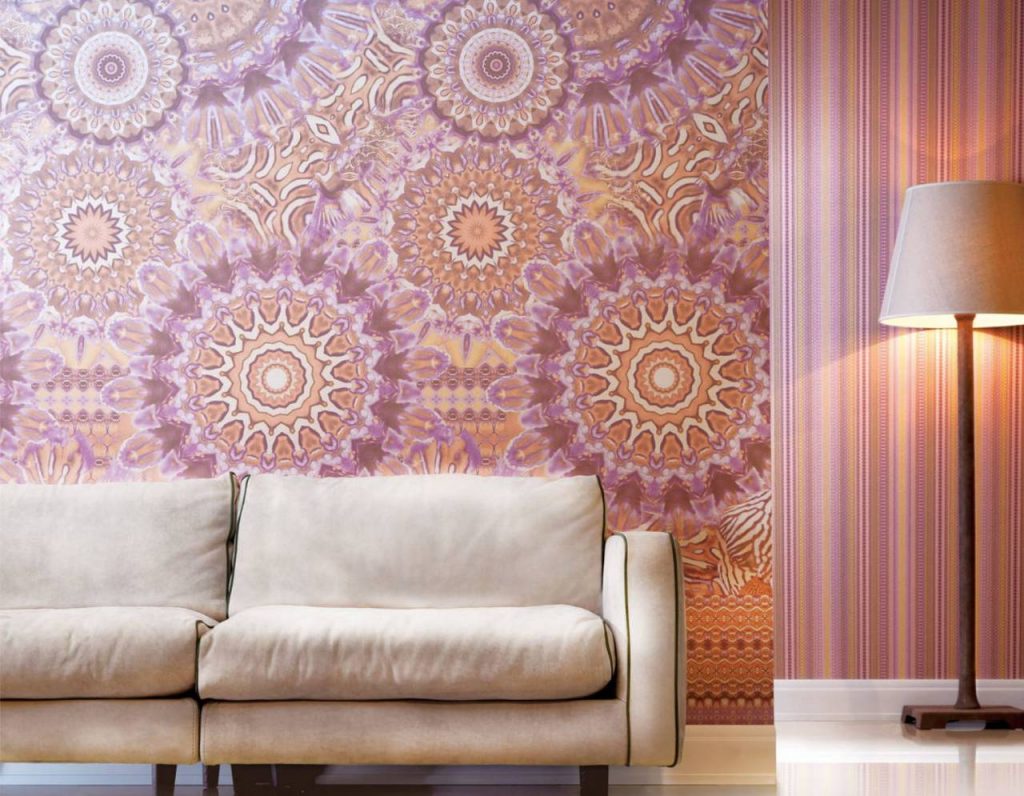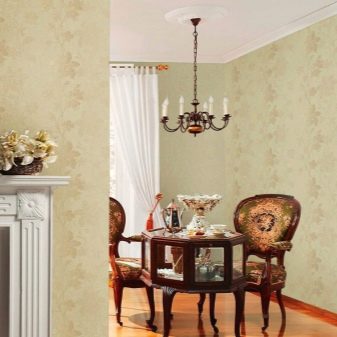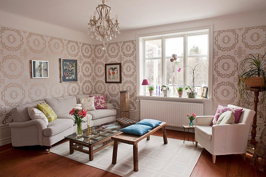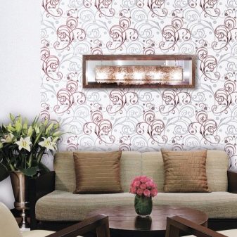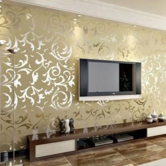 Für das Wohnzimmer eignen sich beide Tapetenarten. Natürlich geben heiß geprägte Vinyltapeten oder geschäumte Strukturen mehr Raum für Fantasie.Große orientalische Ornamente passen perfekt in den asiatischen Stil Ihres Interieurs. Klassisch und barock ergänzen das Monogramm auf einem hellen Hintergrund, und die geprägte volumetrische Struktur wird der Atmosphäre Komfort und Luxus verleihen.