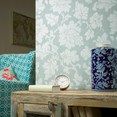 Heller Türkis Hintergrund mit einem metallischen Muster verleiht Ihrem Interieur einen besonderen Chic.