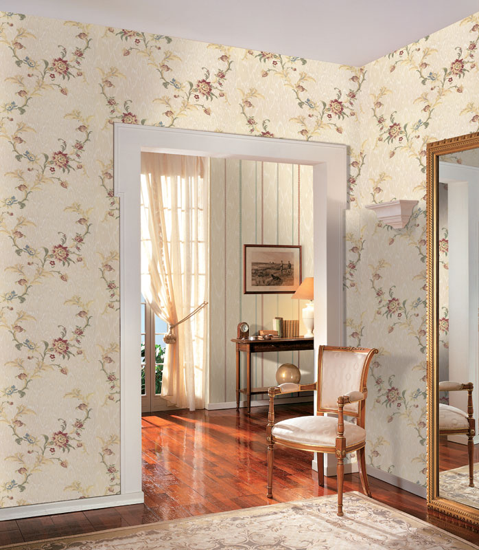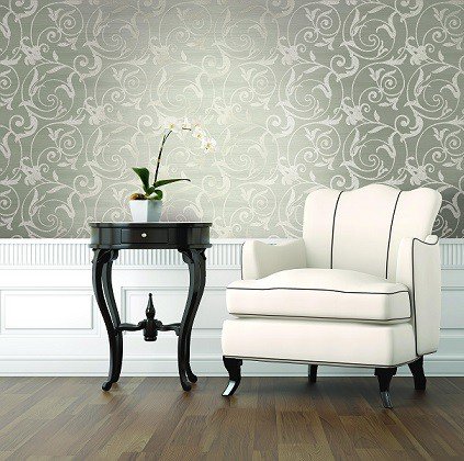 - Siebdruck hat ein leichtes Relief. Seidenfäden werden in Vinyl eingewebt und mit Zeichnungen geprägt. Die Überläufe im Licht lassen die Tapete wie echte Seide aussehen. Dies ist eine kostengünstige und zuverlässige Imitation von Tapeten aus echten Stoffen;