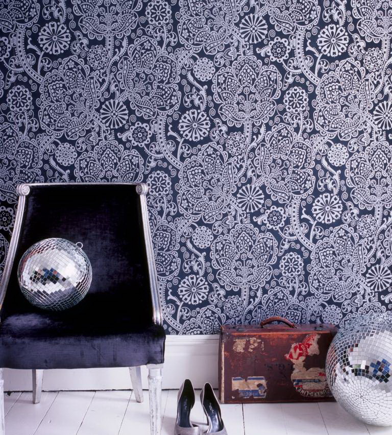 Eklektische Themen werden mit voluminösen weißen Wandmustern ergänzt.